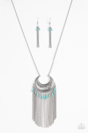 Desert Coyote Silver and Turquoise Blue Fringe Necklace - Paparazzi Accessories