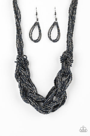 City Catwalk Blue and Gunmetal Seed bead Necklace - Paparazzi Accessories