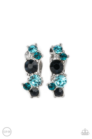 Cosmic Celebration Blue Rhinestone Clip-on Earrings - Paparazzi Accessories