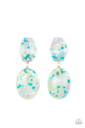 Flaky Fashion Multi Blue Confetti Acrylic Earrings - Paparazzi Accessories