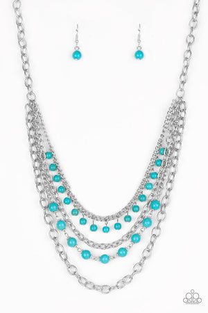 Ground Forces Turquoise Blue Stone and Silver Chain Necklace - Paparazzi Accessories