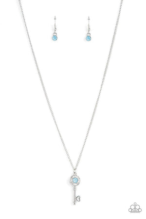 Prized Key Player Opal Blue Rhinestone Key Necklace - Paparazzi Accessories