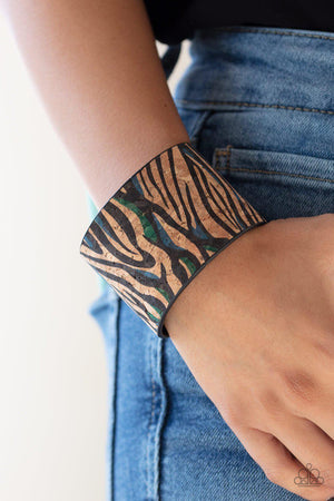 Show Your True Stripes Blue Animal Print Cork Cuff Bracelet - Paparazzi Accessories
