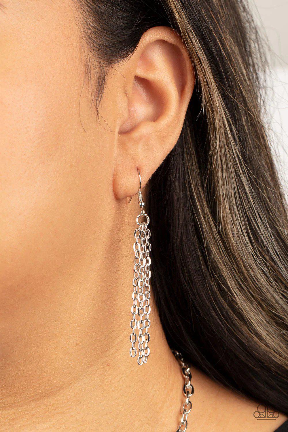 Flecked in shell-like iridescence, a brown painted square silver frame swings from the bottom of a bold silver chain. A matching curtain of silver chains streams out from the bottom of the colorful pendant, adding a playful movement. Features an adjustable clasp closure.