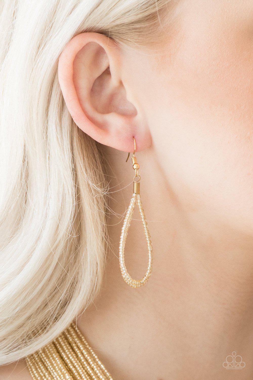 Streaming Starlight Gold Seed Bead Necklace and matching Earrings - Paparazzi Accessories