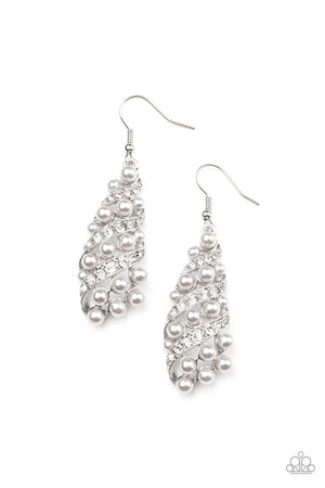 Ballroom Waltz Silver Pearl and White Rhinestone Earrings - Paparazzi Accessories