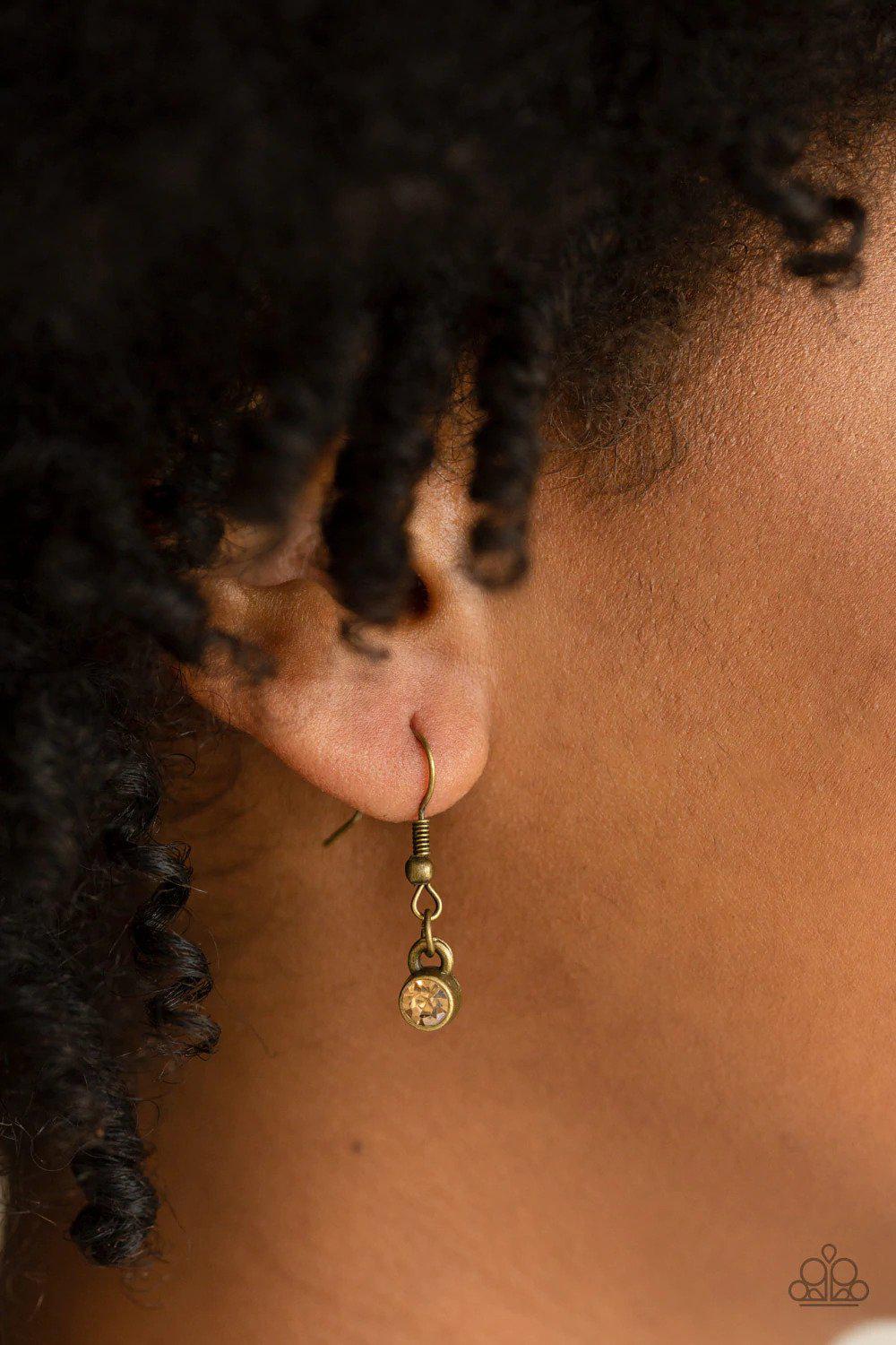 Radiating with studded brass bars, a glistening marquise shaped frame swings from the bottom of an elongated gunmetal chain. Glittery topaz rhinestones adorn the frame, adding a refined flair to the regal pendant. Features an adjustable clasp closure.
