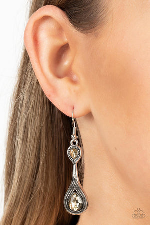 Dazzling Droplets Brown Rhinestone Earrings - Paparazzi Accessories