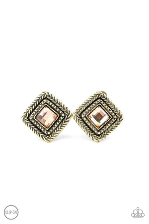 Fashion Square Brass Clip-On Earrings - Paparazzi Accessories