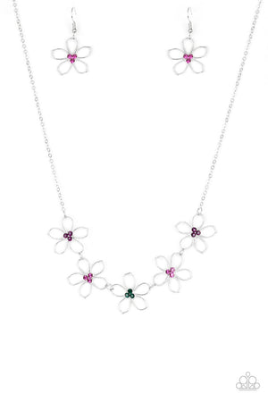 Hoppin Hibiscus Multi Rhinestone Flower Necklace - Paparazzi Accessories