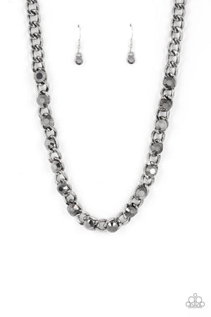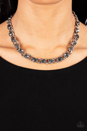 Major Moxie Silver & Hematite Rhinestone Necklace - Paparazzi Accessories