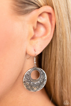 Western Beau Silver Heart Earrings - Paparazzi Accessories