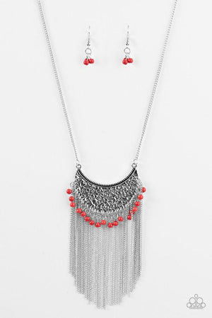 Desert Dancer Long Red and Silver Fringe Necklace - Paparazzi Accessories