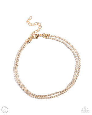 Dainty Declaration Gold & White Rhinestone Anklet - Paparazzi Accessories