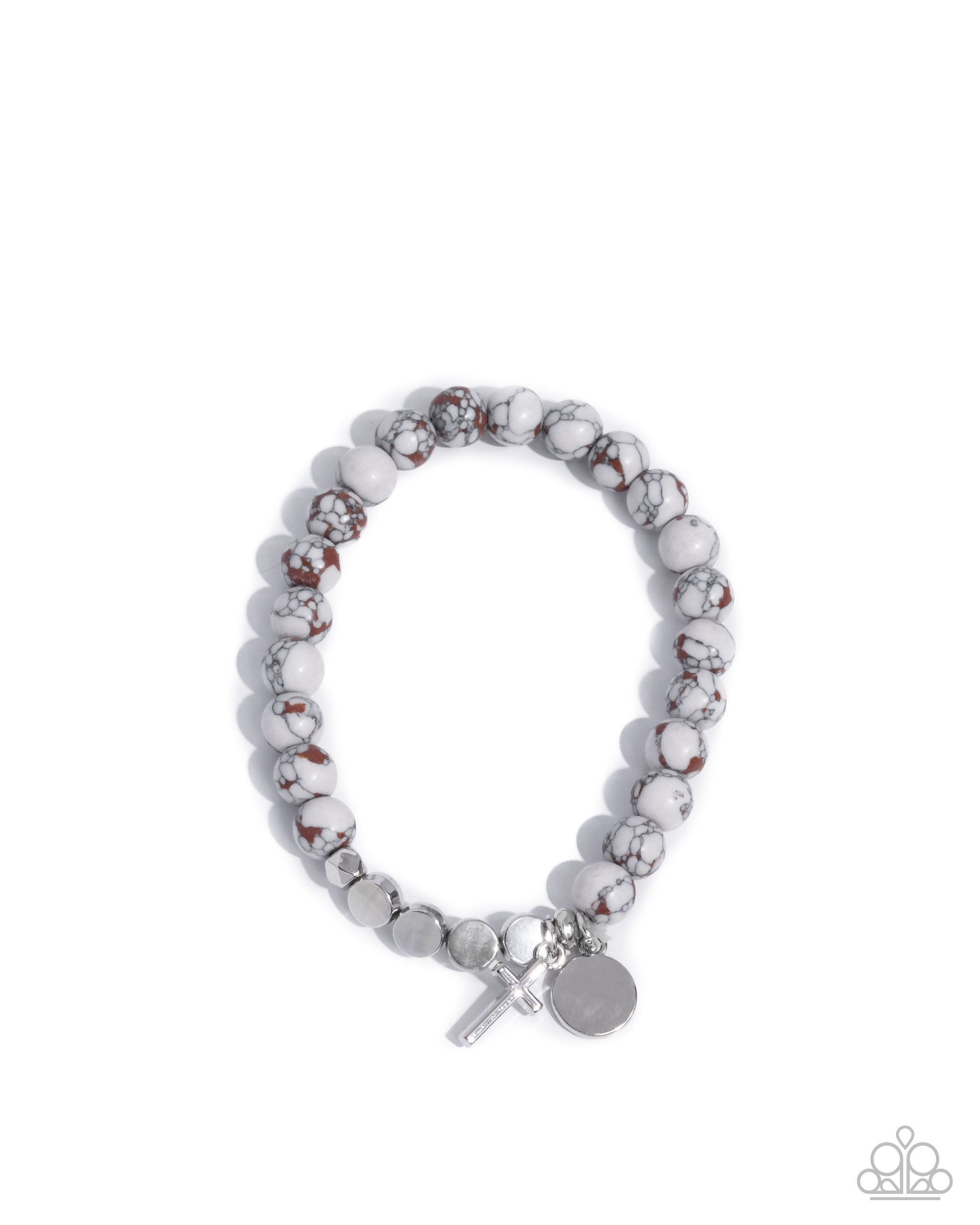 Devout Debut White Stone & Silver Bracelet - Paparazzi Accessories