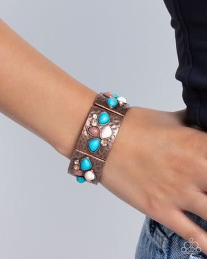 Folksy Fame Copper & Turquoise Blue Stone Bracelet - Paparazzi Accessories