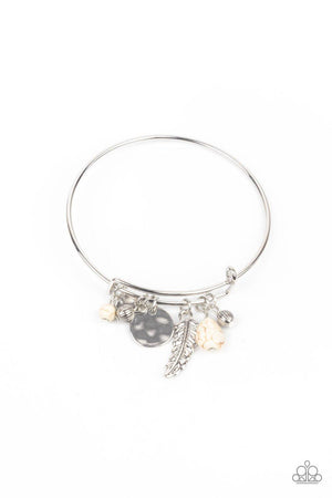 Root and RANCH White Stone Charm Bangle Bracelet - Paparazzi Accessories