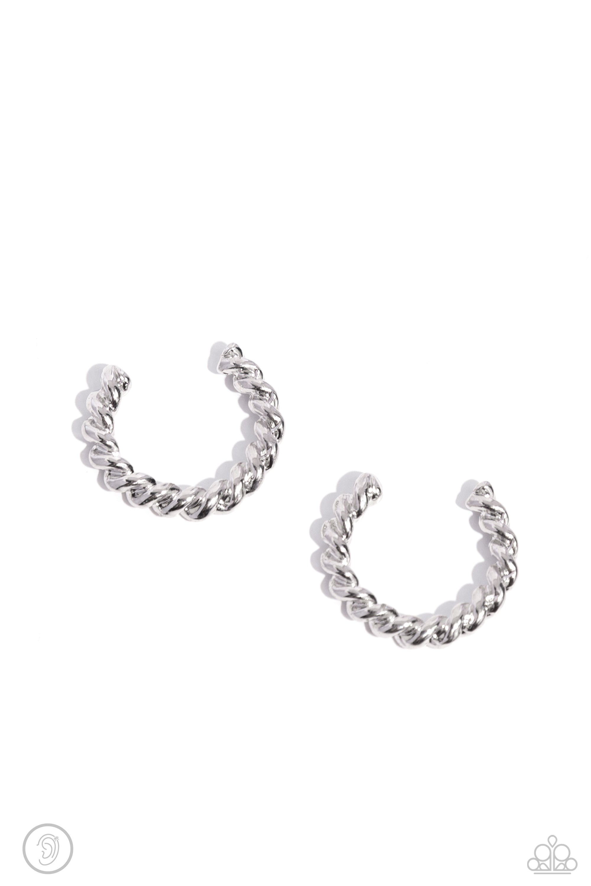 Twisted Travel Silver Cuff Earrings - Paparazzi Accessories