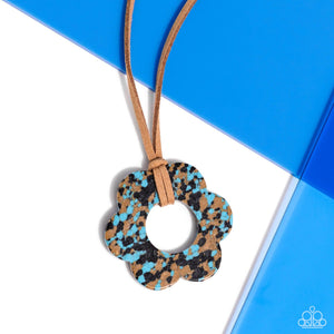 Tied Triumph Brown & Turquoise Blue Stone Flower Necklace - Paparazzi Accessories