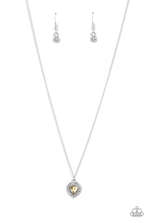 Day of Love Yellow Rhinestone Heart Necklace - Paparazzi Accessories