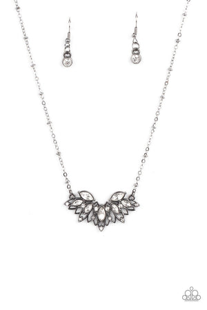 Deluxe Diadem Gunmetal Black and White Rhinestone Necklace - Paparazzi Accessories