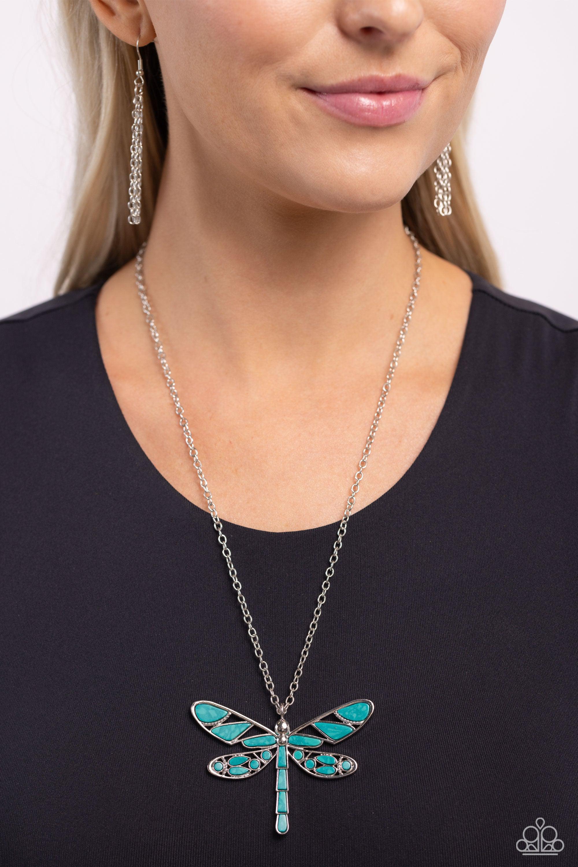FLYING Low Teal Green Stone Dragonfly Necklace - Paparazzi Accessories
