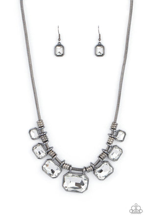 Urban Extravagance Gunmetal Black & White Gem Necklace - Paparazzi Accessories