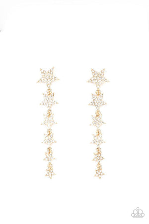 Americana Attitude Gold & White Rhinestone Cascading Star Earrings - Paparazzi Accessories