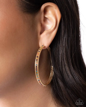 Candescent Collision Gold Multi Color Rhinestone Hoop Earrings - Paparazzi Accessories
