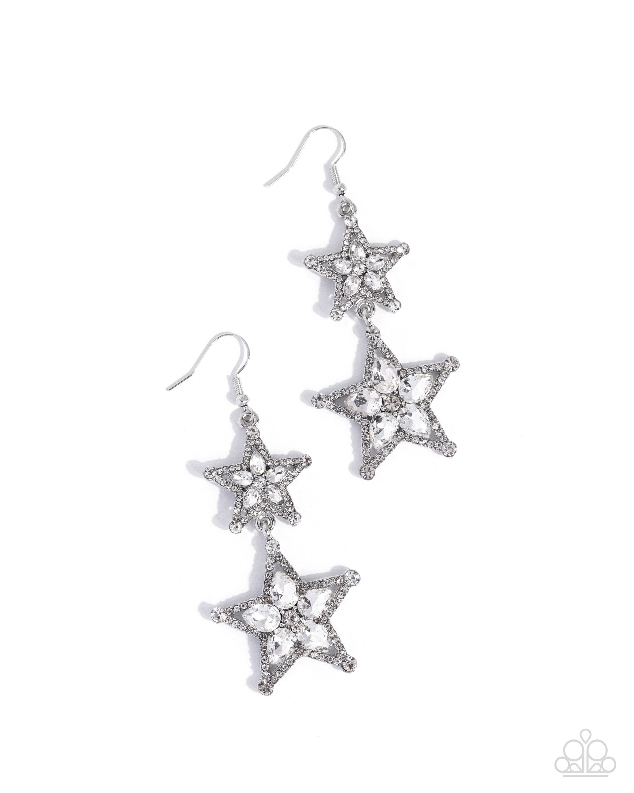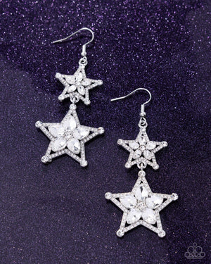 Glittery Galaxy White Gem Star Earrings - Paparazzi Accessories