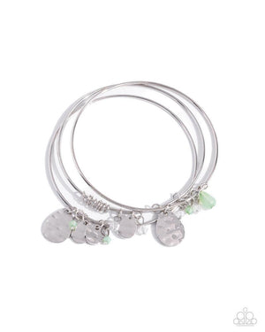 Secret Paradise Green & Silver Charm Bangle Bracelets - Paparazzi Accessories