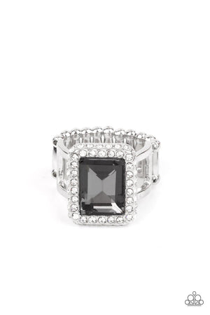 Glamorously Glitzy Silver Rhinestone Ring - Paparazzi Accessories