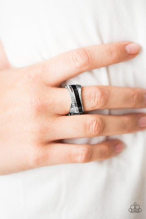 Wrapped In Radiance Silver and Black Ring - Paparazzi Accessories