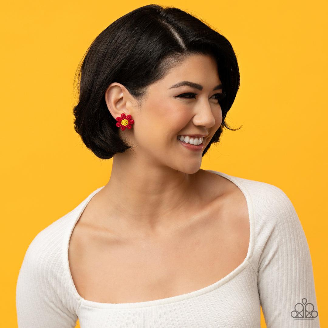 Sensational Seeds Red Daisy Seed Bead Earrings - Paparazzi Accessories