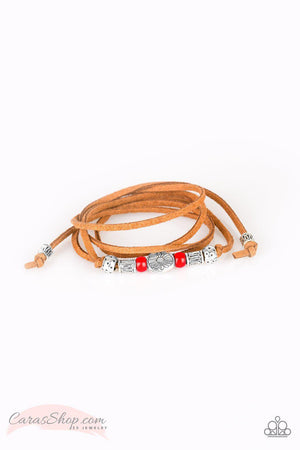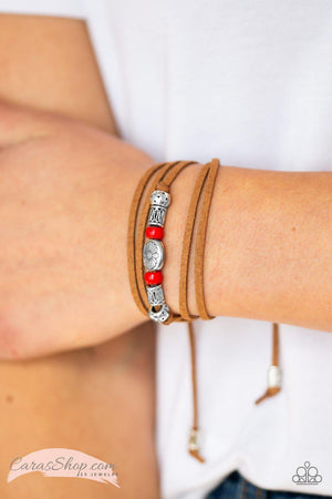 Clear A Path Suede and Red Bead Urban Tie Bracelet - Paparazzi Accessories