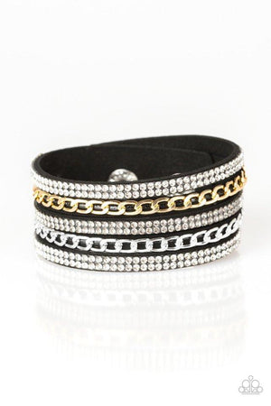 Fashion Fiend Black, Silver and Gold Urban Wrap Snap Bracelet - Paparazzi Accessories