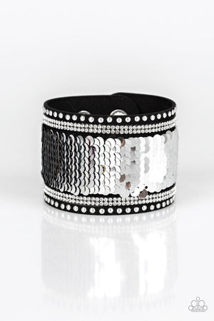 MERMAIDS Have More Fun Multicolor and Silver Sequin Reversible Urban Wrap Snap Bracelet - Paparazzi Accessories