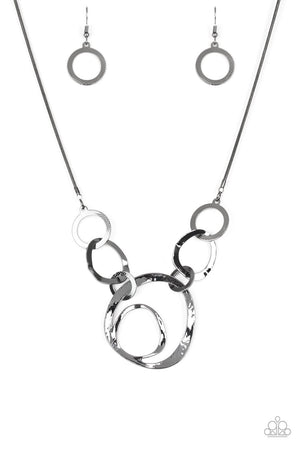 Progressively Vogue Black Gunmetal Necklace and matching Earrings - Paparazzi Accessories