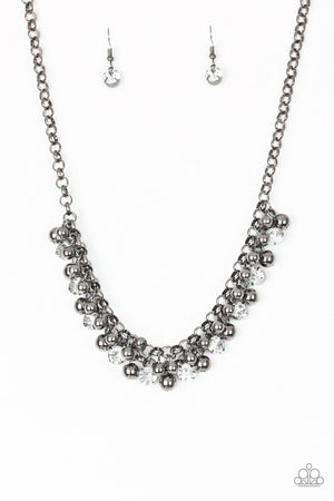 Wall Street Winner Gunmetal Black and White Rhinestone Necklace - Paparazzi Accessories