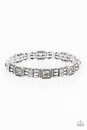 Metro Marvelous Smoky Rhinestone Silver Stretch Bracelet - Paparazzi Accessories