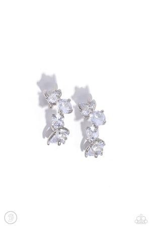 Breathtaking Blend White Rhinestone Cuff Earrings - Paparazzi Accessories