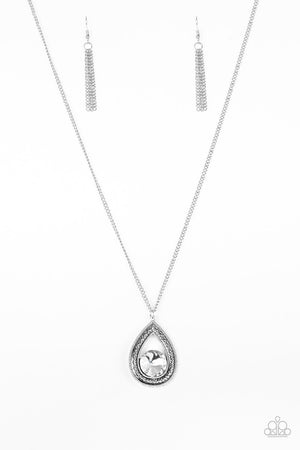 Castle Cabaret White Teardrop Rhinestone Necklace - Paparazzi Accessories