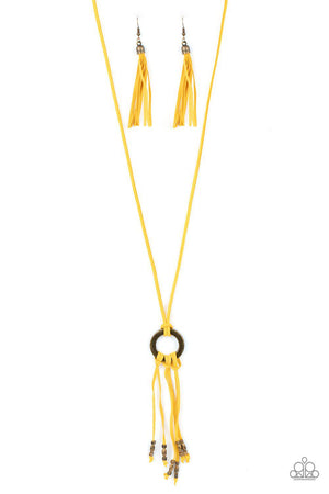 Feel at HOMESPUN Yellow Suede Tassel Necklace - Paparazzi Accessories