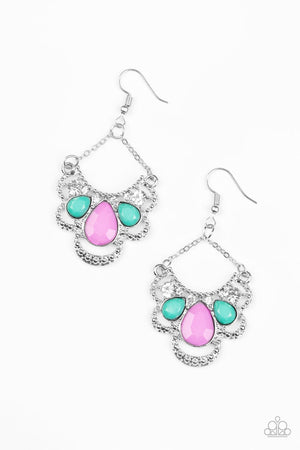 Caribbean Royalty Multi - Green and Purple Earrings - Paparazzi Accessories