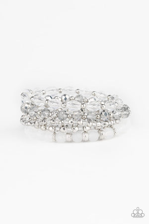 Crystal Collage White and Silver Bracelet Set - Paparazzi Accessories