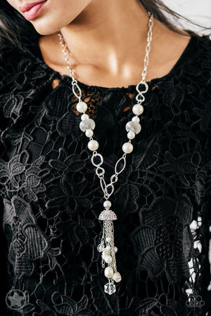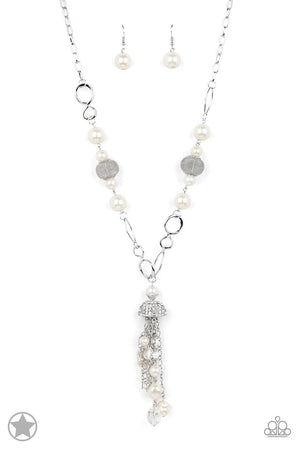 Designated Diva Long White Tassel Necklace and matching Earrings - Paparazzi Accessories