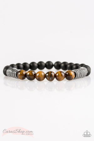 Energetic Brown Tiger Eye and Black Stone Stretch Bracelet - Paparazzi Accessories