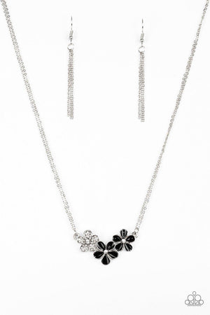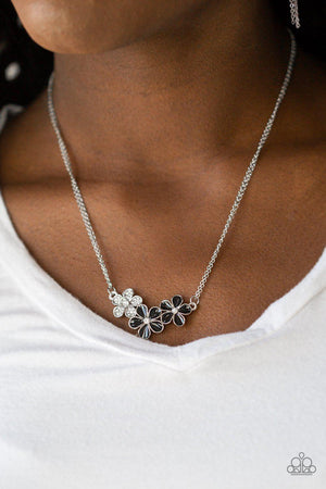 Hibiscus Haciendas Black Flower Necklace and matching Earrings - Paparazzi Accessories