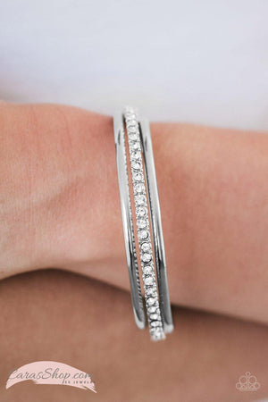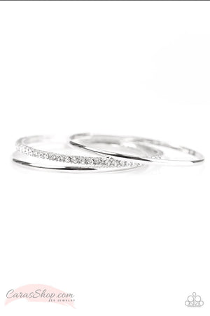 Metro-politan White Rhinestone and Silver Bangle Bracelet Set - Paparazzi Accessories