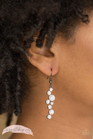 Milky Way Magnificence - Gunmetal and White Rhinestone Earrings - Paparazzi Accessories